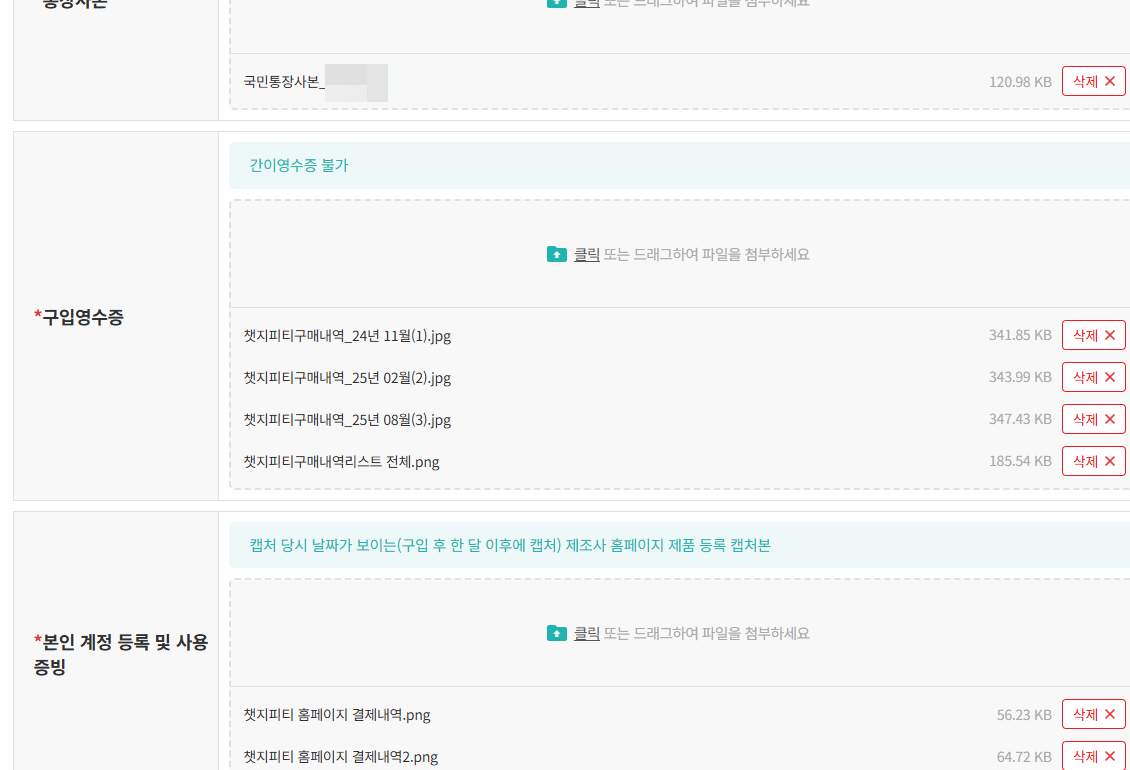 저는 2024년 10월부터 챗지피티 플러스를 구독 중이라, 영수증과 계정 화면 캡처로 제출했어요